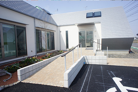 玄関でスリッパに履き替えることなくお入りいただけます。 お子様やご年配の方もスムーズに治療を受けられます。 入り口にスロープが付いているので、車イスの方でも通いやすい歯科医院です。 ぜひご家族みな様でおこしください。