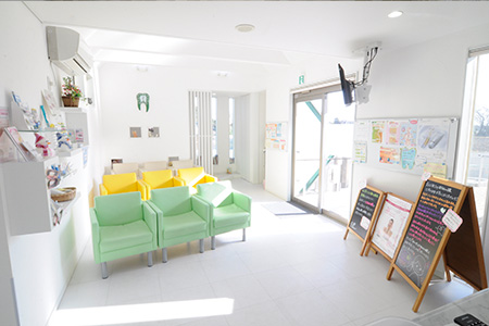 漆喰とは呼吸する壁といわれ、化学接着剤を使用せず、環境にやさしい待合室です。